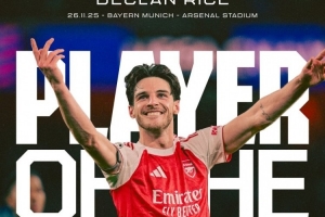 阿森纳官方宣布,经过球迷的投票,赖斯当选本场比赛阿森纳队内最佳球员。