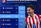 根据统计, 阿尔瓦雷斯已经代表马竞在欧冠中打进了10粒进球,位列队史欧冠进球榜第三名。