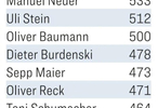 德甲历史门将位置出场纪录目前由奥利弗-卡恩以557次出场保持,诺伊尔最早可在下赛季打破这一纪录。