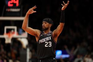 在上半场的比赛中,太阳球员古德温有着不错的发挥,他替补出战了12分51秒,5投2中,三分2中1,得到5分3篮板2助攻2抢断,正负值+14全场最高。