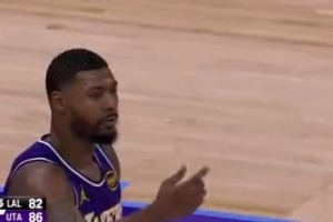 GIF-斯玛特进攻犯规 东契奇不满砸球吃T