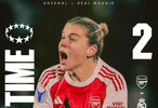 在此前结束的一场女足欧冠联赛阶段第4轮的比赛中,卫冕冠军阿森纳坐镇主场,2-1逆转来访的皇家马德里。