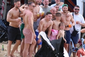 鲁尼在酒吧喝啤酒,显得十分放松,卡里克也被拍到手持啤酒,与妻子莉莎在一起。他们还与一些幸运的球迷合影,这些球迷在沙滩上认出了这些球员。