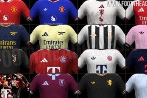 体育资讯1月2日讯 足球装备网站footyheadlines透露26-27赛季由阿迪达斯设计的各队球衣图片,曼联、阿森纳、尤文、拜仁、皇马等队在列,主场球衣与第三球衣均使用阿迪达斯经典logo,客场球衣上则使用三叶草logo。
